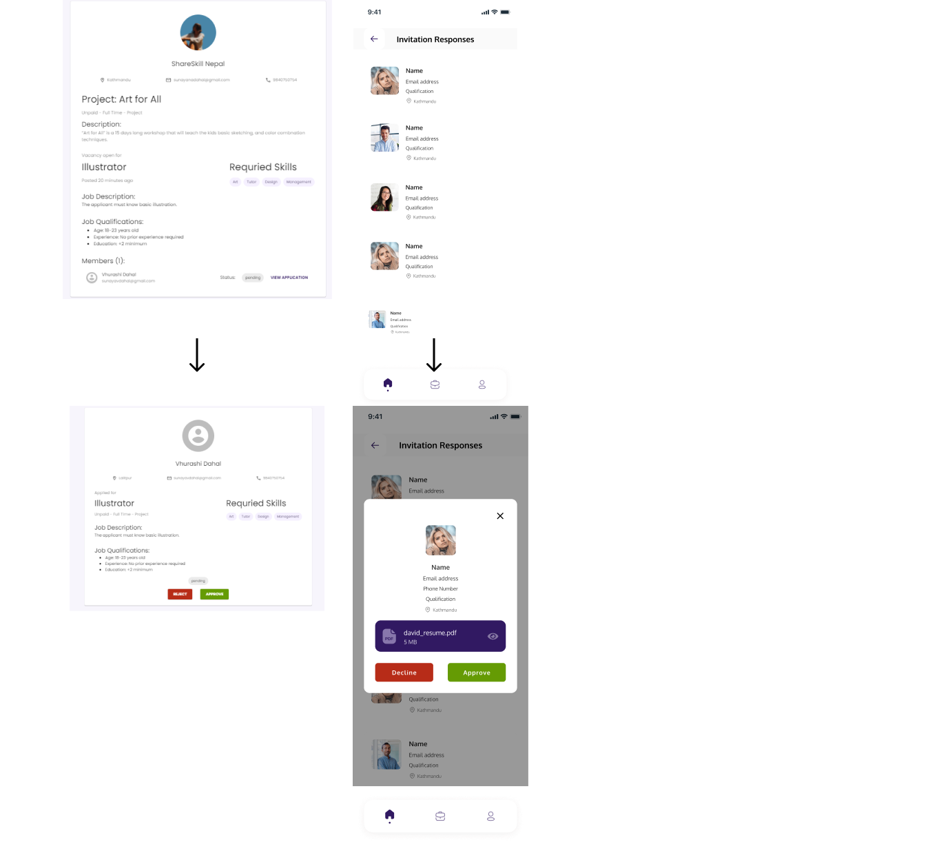 The project starter can view applicants and accept/decline them. The applicants will be notified regarding their acceptance and rejection.