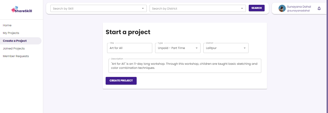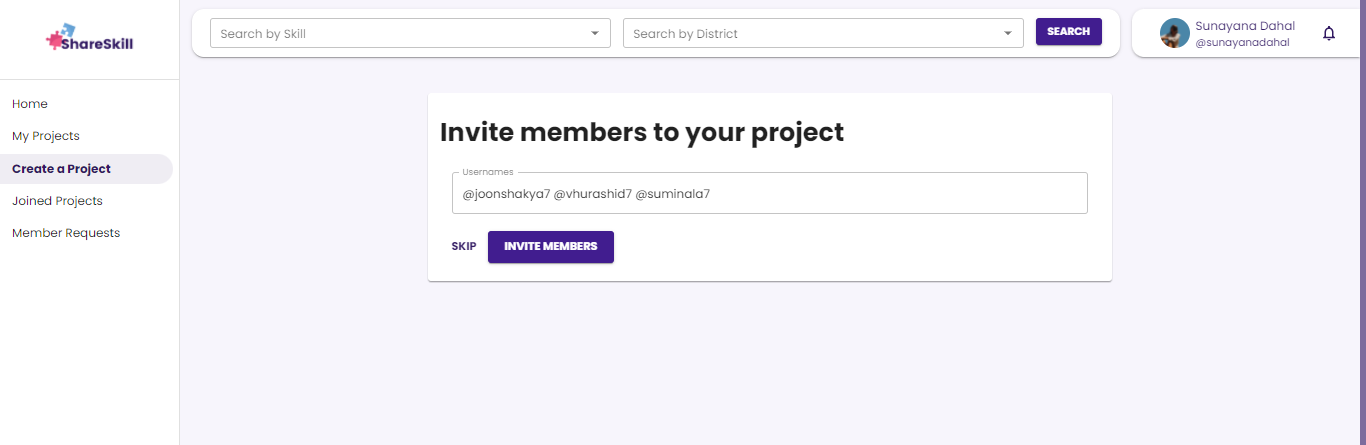 If the project starter has enough people on their team already, insert their ShareSkill usernames to pitch the project.