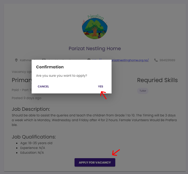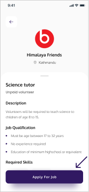 By clicking the desired opportunity’s post, users can apply for any opportunity they like. Make sure to update your ShareSkill profile (upload your resume/CV, contact details). NGOs and project owners will review your ShareSkill profile before accepting/denying your application.