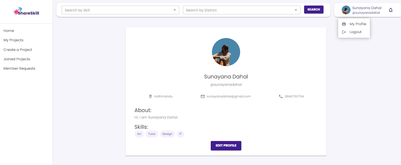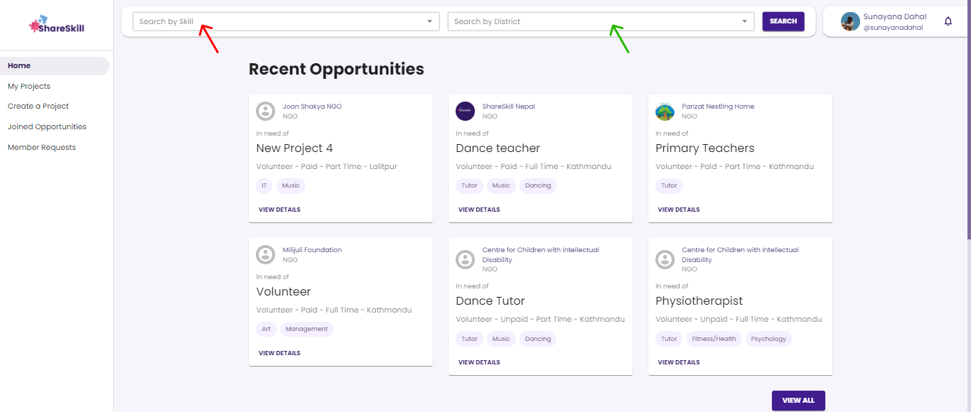 After logging in, update your ShareSkill profile the first thing. Ensure that you provide correct information (Email address, Contact number). While it’s not a compulsion, we recommend uploading your CV/resume and using skill tags on your profile since NGOs and project owners review your ShareSkill profile before hiring you.