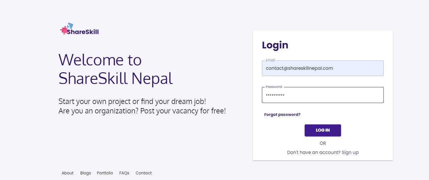 Login with a few simple steps and create your ShareSkill account. Users can set up their ShareSkill jobseeker profile through the website and the app. Whereas NGOs can create their ShareSkill NGO profile only through the website.
