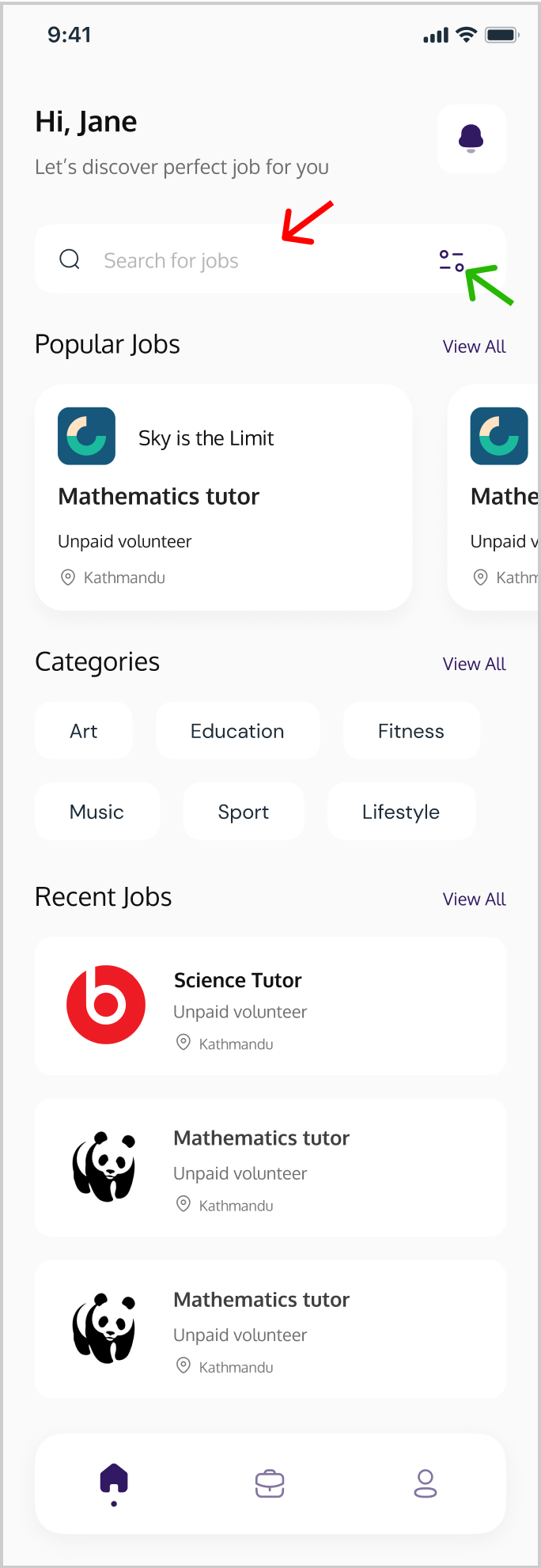 In the search bar, use skill tags – Art, Finance, Culinary, Sports, Tutor, Health, IT, Design, Dancing, Management, Psychology, Music.